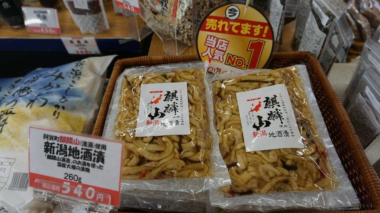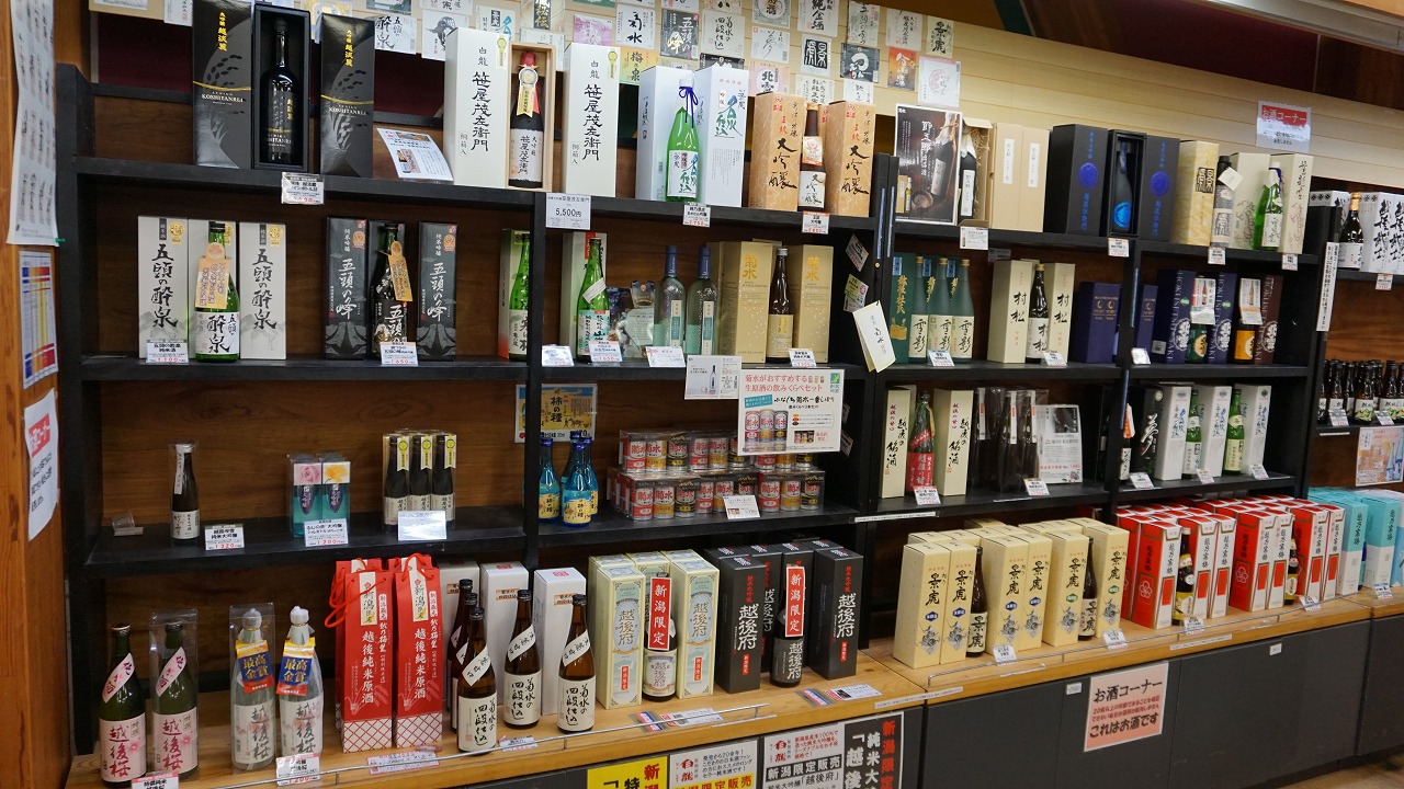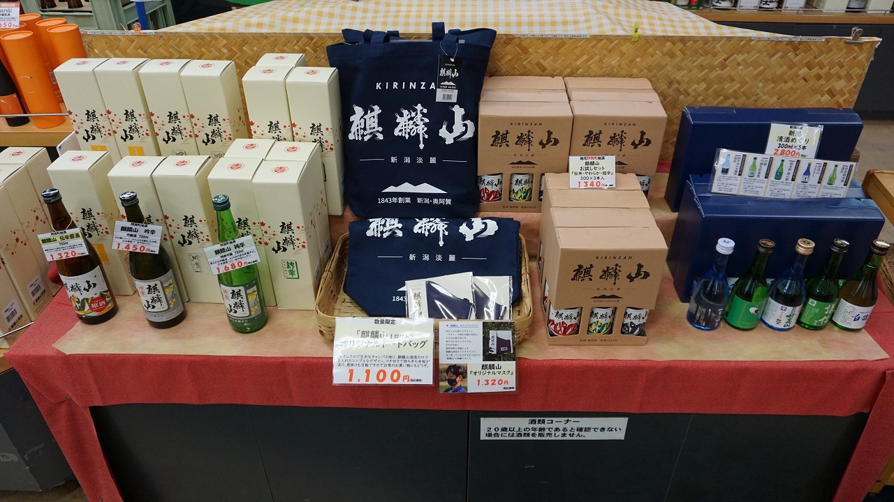 麒麟山をはじめ、新潟の日本酒を数多くそろえており、新潟限定で販売している日本酒もここで手に入ります。