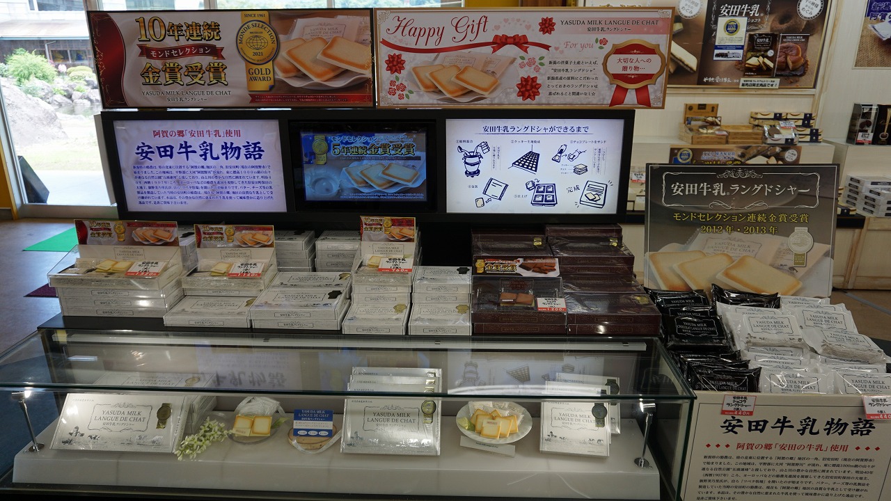 ご当地の甘いお菓子や、飲み物も充実しています。